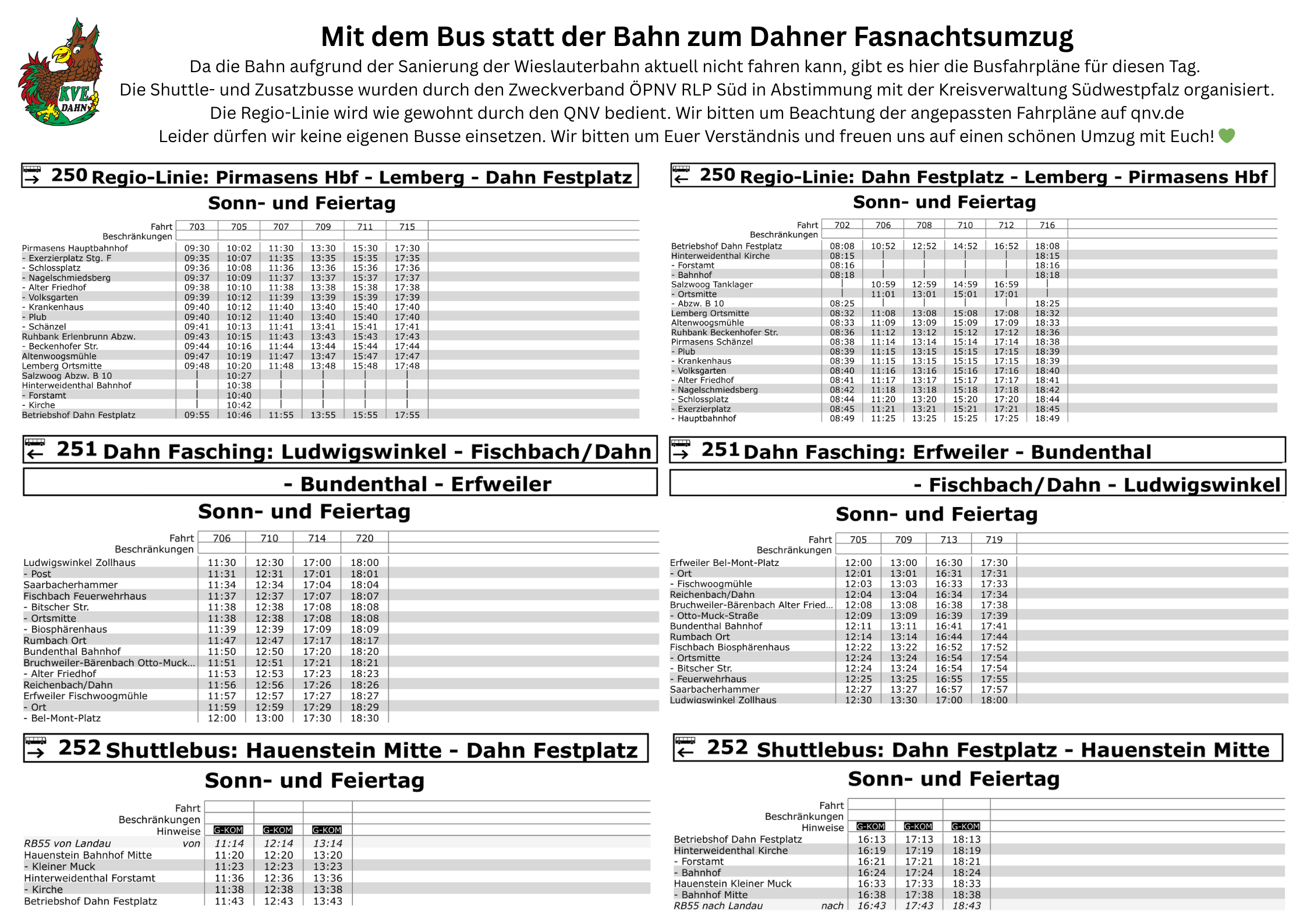 Bedingt durch die Baustelle in der Grabenstraße, ist die Auflösungstrecke dieses Jahr direkt in der Weißenburgerstraße, d.h. Richtung Dahn-Reichenbach kann es zu Verkehrsbehinderungen kommen.